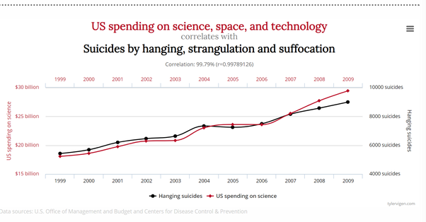 那個特殊的“鏈接”看起來非常令人信服,對吧?它比美國環(huán)保署報告“研究”強(qiáng)1000多%,該研究在世界各地的酒吧實施了禁煙令。認(rèn)真。EPA的工作僅與90%相關(guān)。泰勒上面的“研究”與99.8%相關(guān)但是很明顯沒有真正的因果關(guān)系,對吧?看到15種相互關(guān)聯(lián)的瘋狂事物許多,更多。