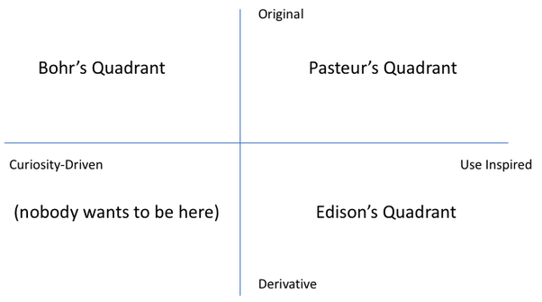 波爾的象限幾乎完全是學術(shù)研究。其中大部分都有一天使用,但我們并不總是知道研究完成時的用途(例如,量子力學是一種好奇心,直到它成為信息時代的基礎(chǔ))。