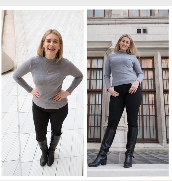 如果相機(jī)從高處或低處指向您,則會(huì)嚴(yán)重扭曲您。這些照片都不是Natalie在人眼中出現(xiàn)的方式。