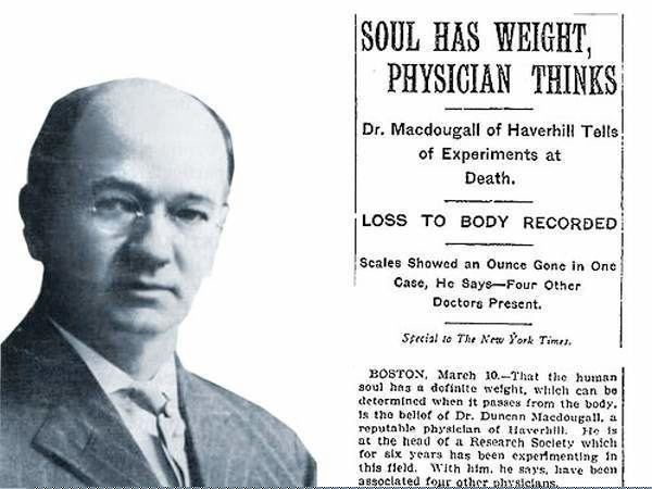 多年來(lái),已經(jīng)進(jìn)行了許多旨在發(fā)現(xiàn)超自然現(xiàn)象的實(shí)驗(yàn)。20世紀(jì)初,鄧肯·麥克杜加爾(Duncan Macdougall)博士得出結(jié)論,人的靈魂重21克,直到后來(lái)的科學(xué)家指出他的方法存在缺陷。