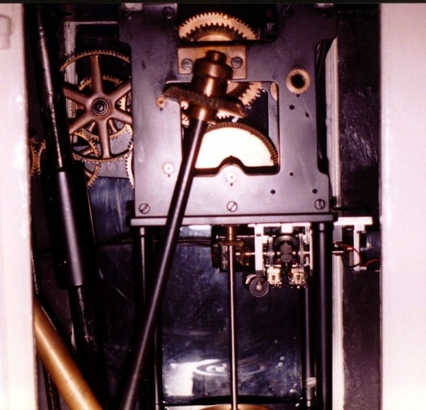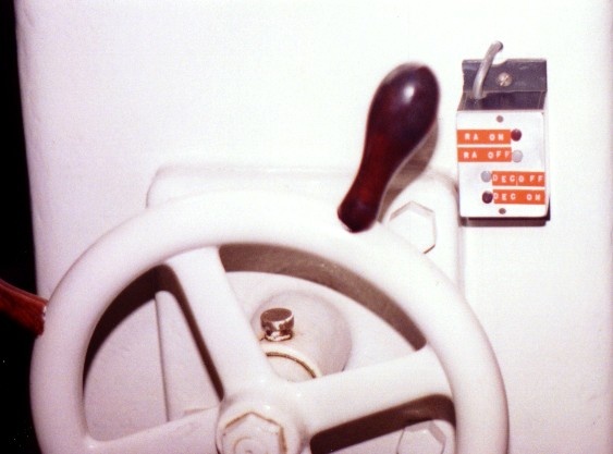 這是用于在正確的提升中移動望遠(yuǎn)鏡的“方向盤”。(您如何看待“新”電控箱上的舊式壓花膠帶標(biāo)簽?)