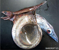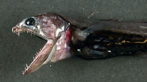 Black Swallower是一種深海魚類,可以吞下大于其尺寸的魚類。它主要生活在熱帶和亞熱帶水域,生活在700-2745m的深度,是其屬中非常普遍的魚類,通常在北大西洋地區(qū)更為常見。它的大小只有9英寸,但吞下的魚比其重量大10倍,是其長度的兩倍。令我們驚訝的是,它以骨魚為食。2007年,有人發(fā)現(xiàn)一條死燕子漂浮在開曼島的海岸外,肚子里放著34英寸的鯖魚。